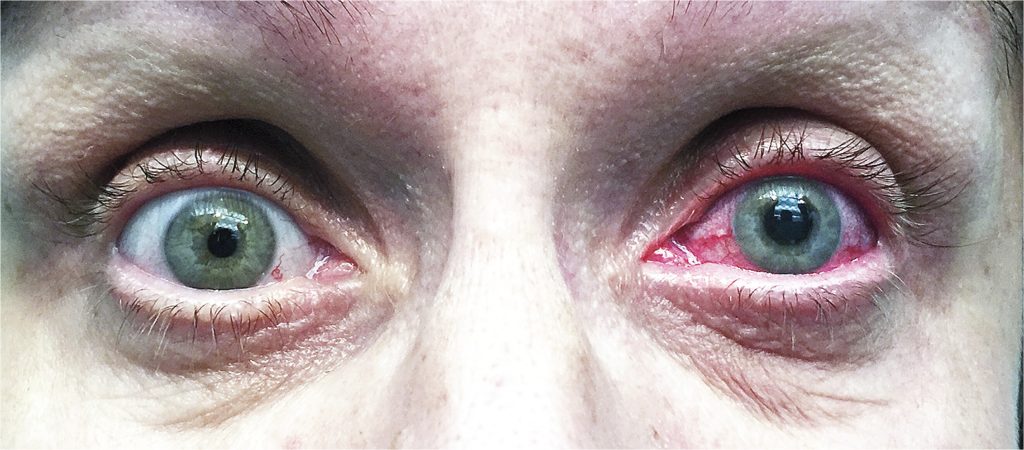 - Increased eye pressure may be present